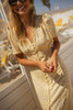 Den eleganta V-ringningen framhäver din halslinje på ett subtilt sätt, medan de korta puffärmarna skapar en lekfull och romantisk look. En perfekt kombination av stil och lätthet.